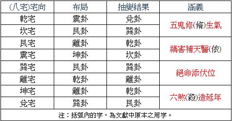 八宅究竟如何「換象抽」?其辦法整理自《陽宅真訣》,如下表所示: